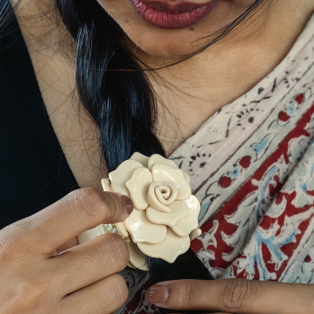 Add a touch of romance to your hairstyle with the Gul Hair Clip. Designed with a blooming rose shape, it offers a secure grip and refined beauty. Durable, lightweight, and perfect for elevating any look with effortless elegance.